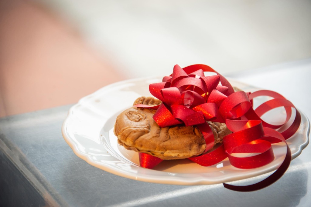 ケーキが苦手な新郎様のためにこっそりとウエディング仕様の可愛いたい焼きを忍ばせて