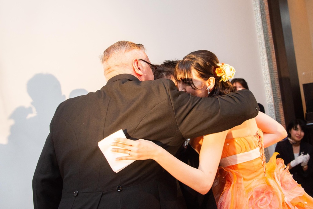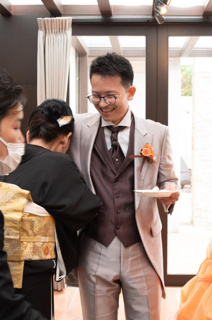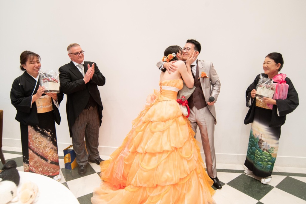 おふたりが親御様の元に近づくと何も言わずともお互いにぎゅっと抱き寄せられ